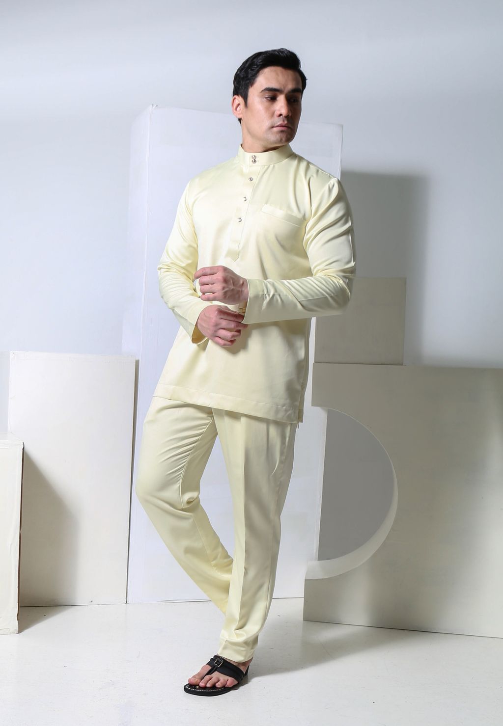Baju Melayu Moden Putra Slim Fit (Baby Yellow)