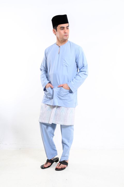 Baju Melayu Moden Teluk Belanga (Ice Blue)