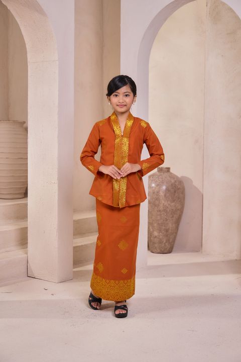Kebaya Songket Mustika For Kids - Brick Orange/Gold