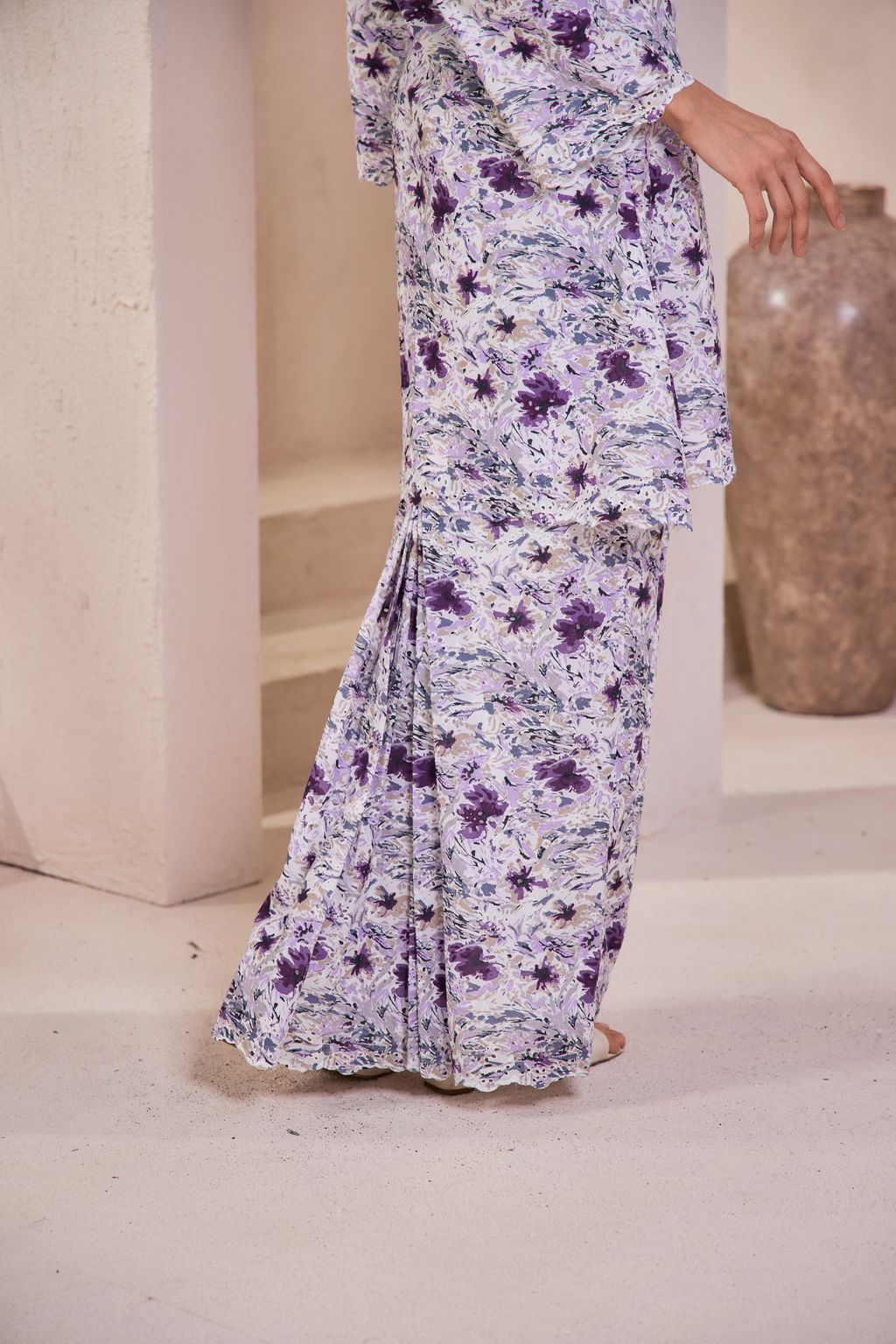 The Kebaya-Kurung combination carries deep cultural significance, celebrating the heritage and traditions of Malay attire. The Kebarung, featuring beautiful embroidery on cotton, adds texture and dimension to the fabric, making it visually stunning and enhancing its overall richness and feel.