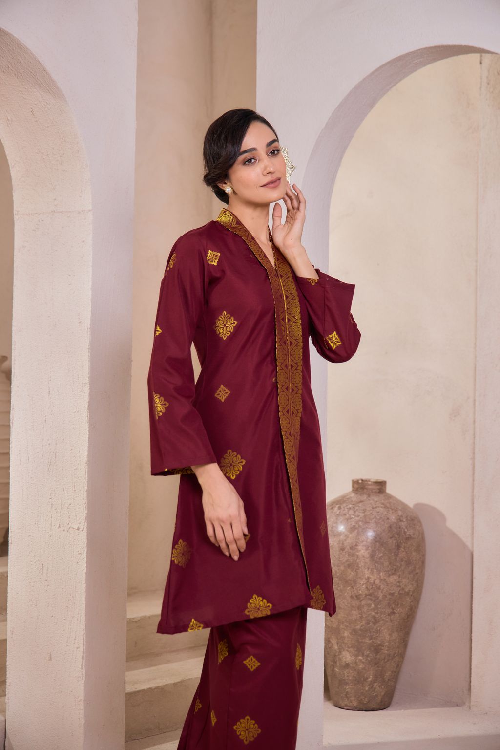 • High-quality songket fabric with intricate patterns for a luxurious feel
