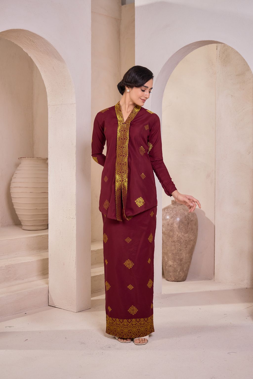 Kebaya Songket Mustika - Maroon/Gold