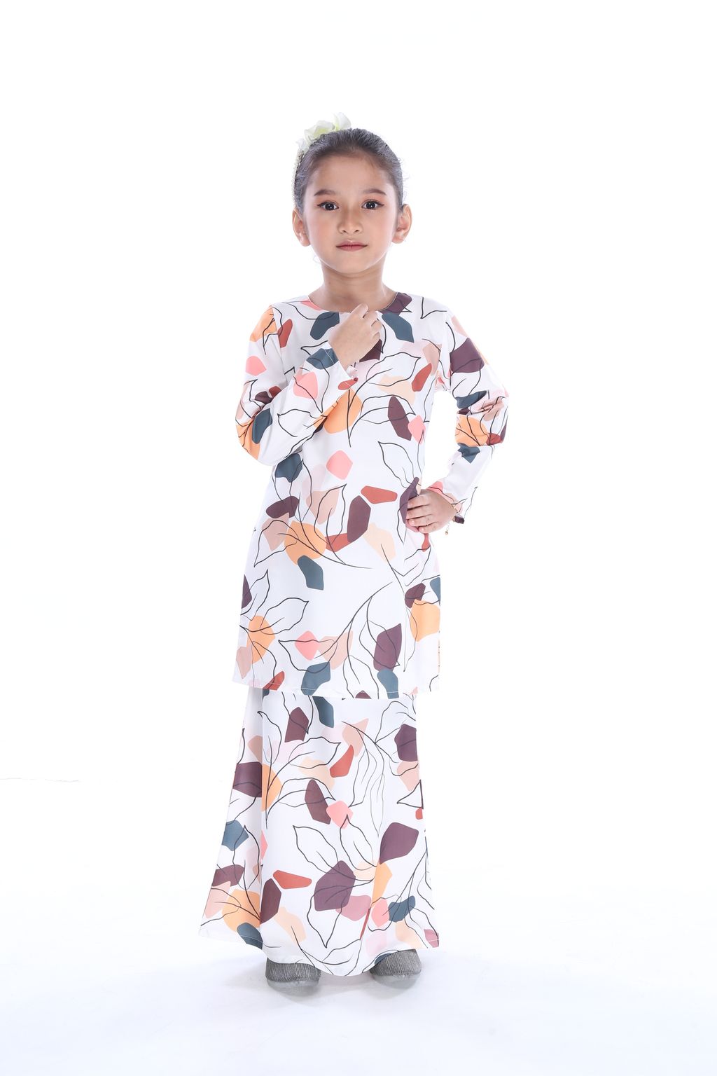 The Baju Kurung Moden Daunan for kids is compliment for baju kurung moden daunan for adult which have same design and colour. This exclusive printed kurung gives simplicity and comfort style for kids and the mother.
